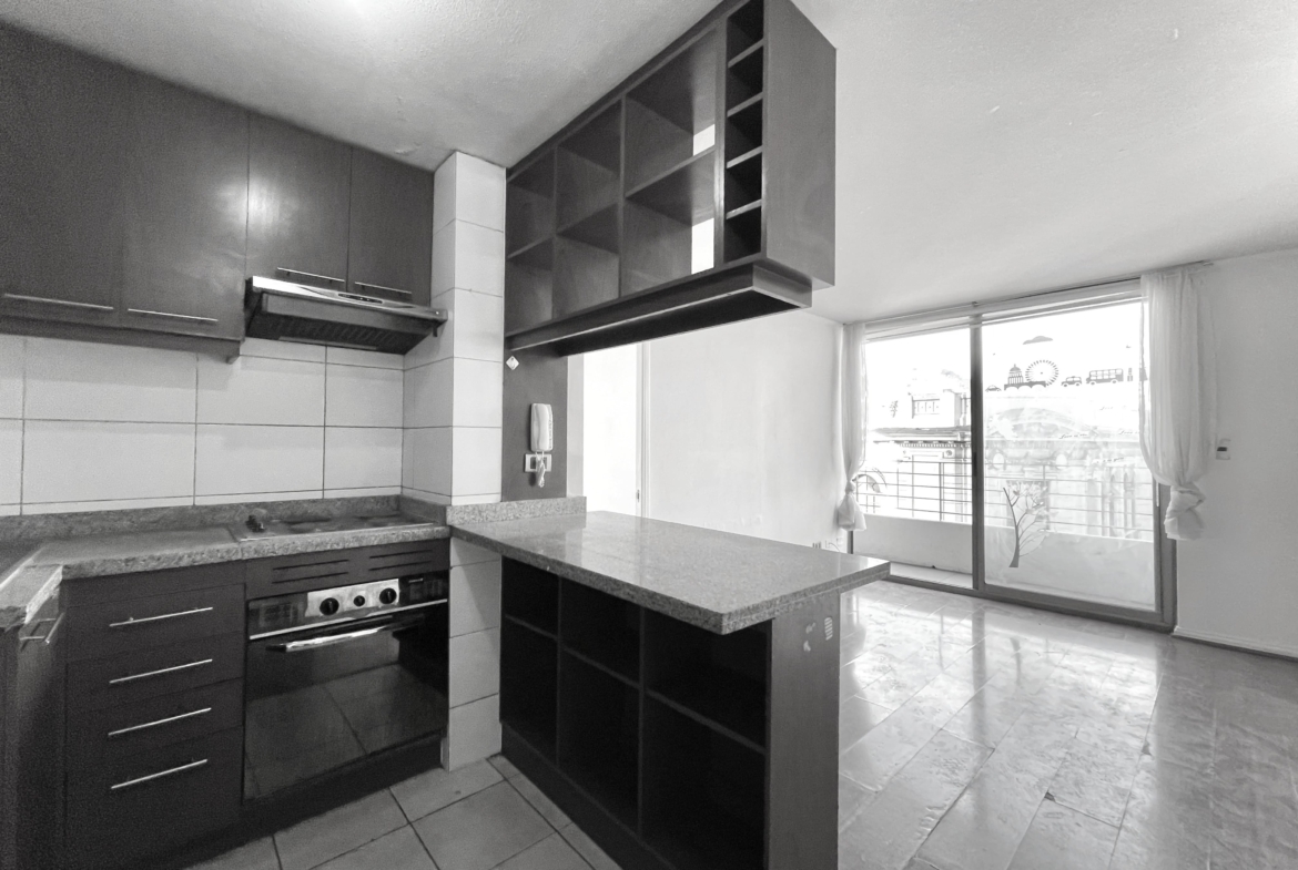Como características destacadas, cuenta con cocina americana totalmente equipada: encimera, campana y horno; además de espacioso living-comedor integrado, con terraza vista Oriente a lo de largo del departamento.