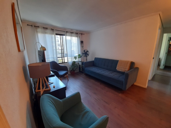 Al ingresar, nos recibe una cocina tipo americana y el living-comedor junto que conecta a una terraza con vista despejada y orientación al Sur-Poniente. Tras la puerta corredera, se encuentra el dormitorio con closet y baño en suite.