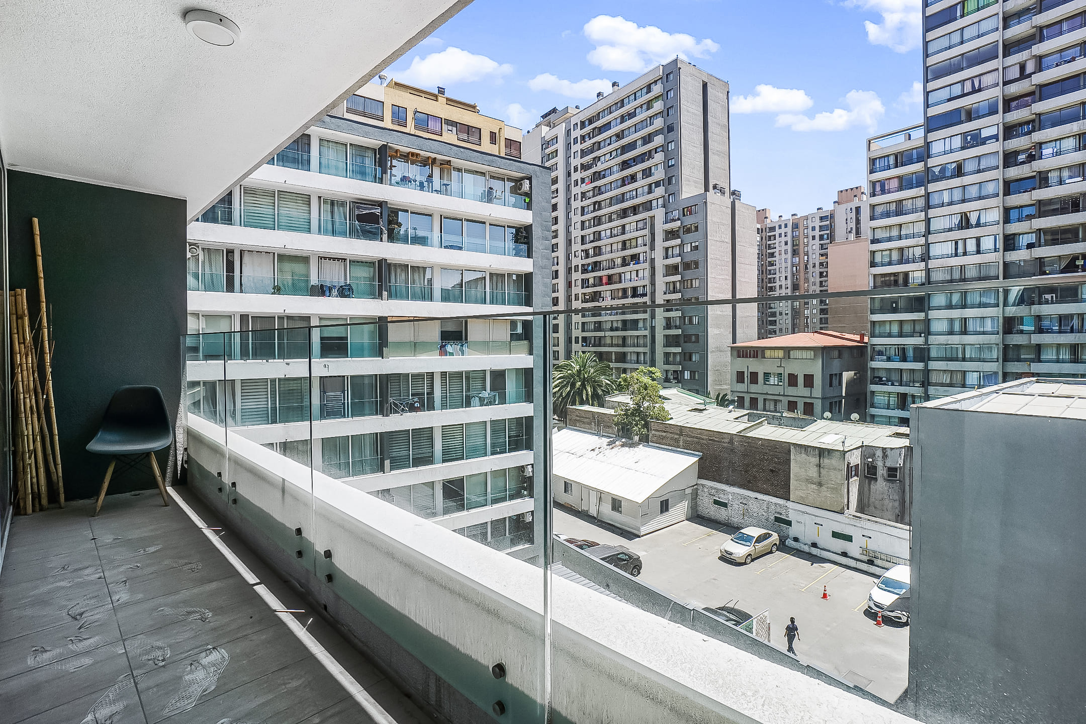 Moderno departamento tipo mariposa en arriendo en Santiago Centro. A pasos del Metro (L1, L3) y Universidades.