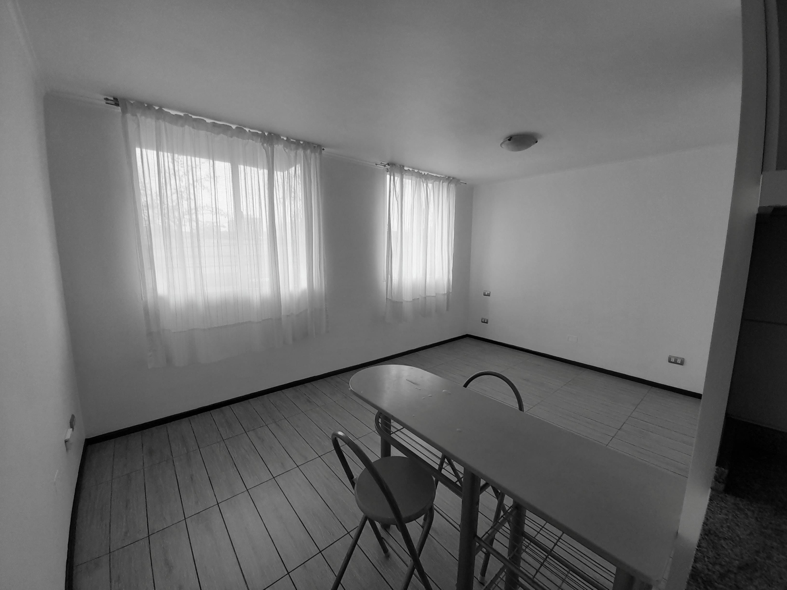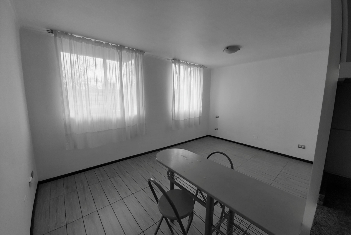 Al entrar, serás recibido por una amplia cocina con buen espacio de superficie, equipada y amoblada. Cuenta con cubierta de granito, encimera eléctrica de 2 platos, horno y campana. A un costado, le sigue el espacio principal, que se ilumina gracias a su orientación al Poniente. Cuenta con dos closets y el baño tiene conexión a lavadora, lo cual resalta en departamentos de estas características.
