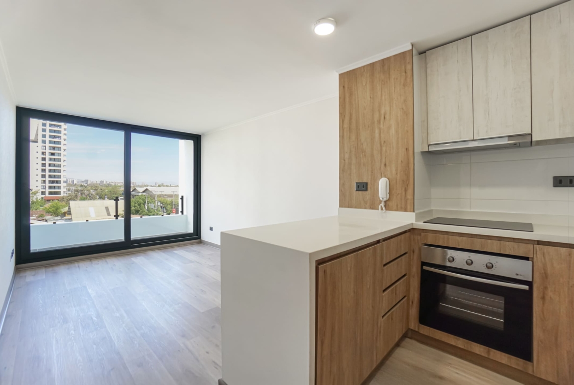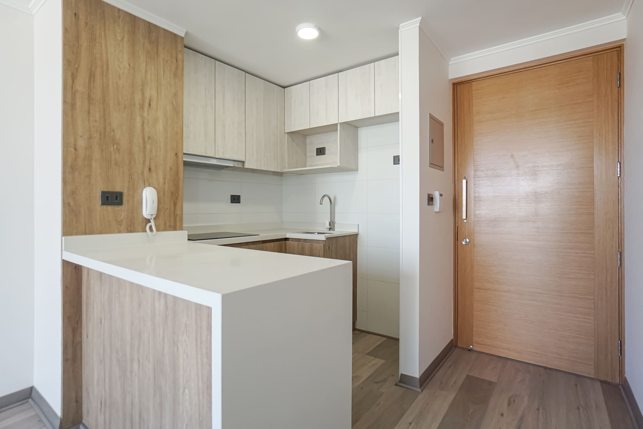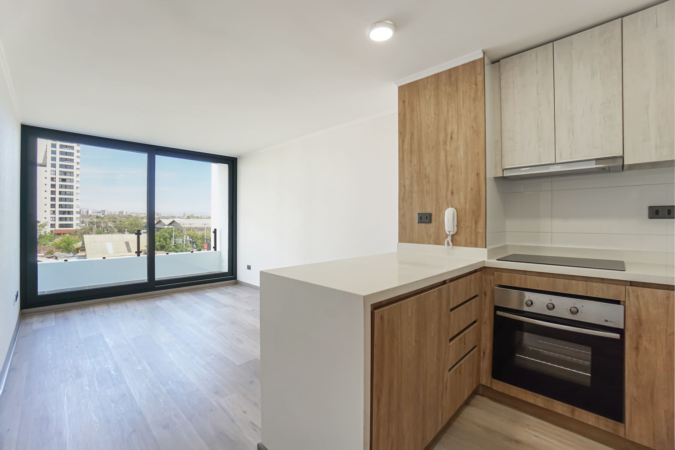 Al entrar, serás recibido por un acogedor living-comedor con ventanales de orientación sur se conecta con la terraza. La cocina es americana, equipada con cubierta de cuarzo, encimera vitrocerámica de 3 platos, horno y campana. El dormitorio principal cuenta con baño en suite y closet.
