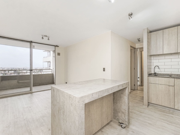 Al ingresar, un living-comedor de orientación Nor-Oriente se llena de luz natural gracias a sus ventanales y cómoda terraza de 2 mts2. con vista semi-despejada. La cocina es independiente, equipada y amoblada con cubierta de melamina, encimera a gas de 4 platos, horno, campana, calefont y conexión a lavadora.