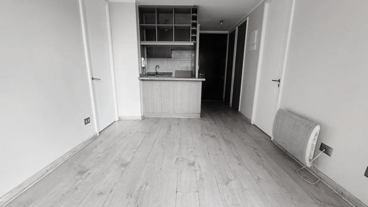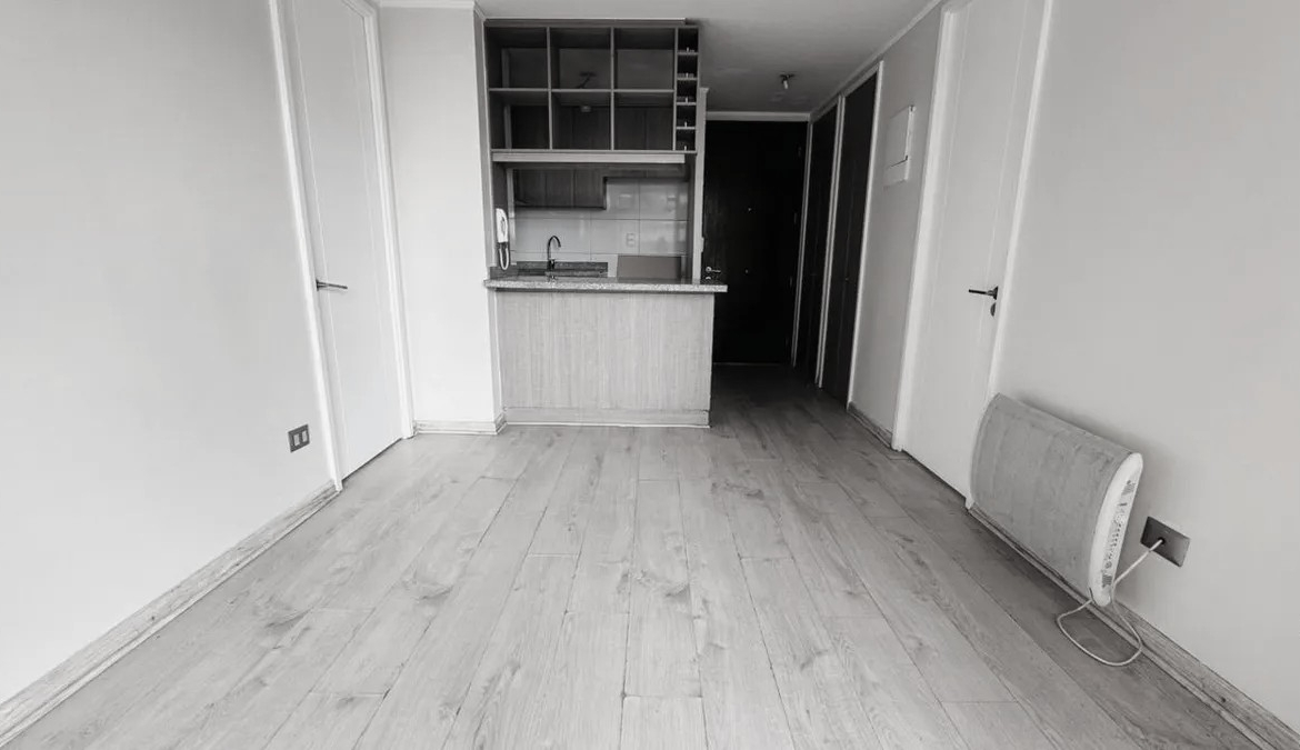 El área de estar integra living y comedor juntos con salida directa a la terraza. La cocina es americana y está equipada con cubierta de granito, encimera vitrocerámica de 3 platos y conexión a lavadora. Entre sus terminaciones destacan el piso flotante en excelente estado y las ventanas de aluminio, que aportan confort térmico y acústico. Su distribución considera dos dormitorios, dos baños completos con tina y uno con ventilación natural, uno de ellos en suite.