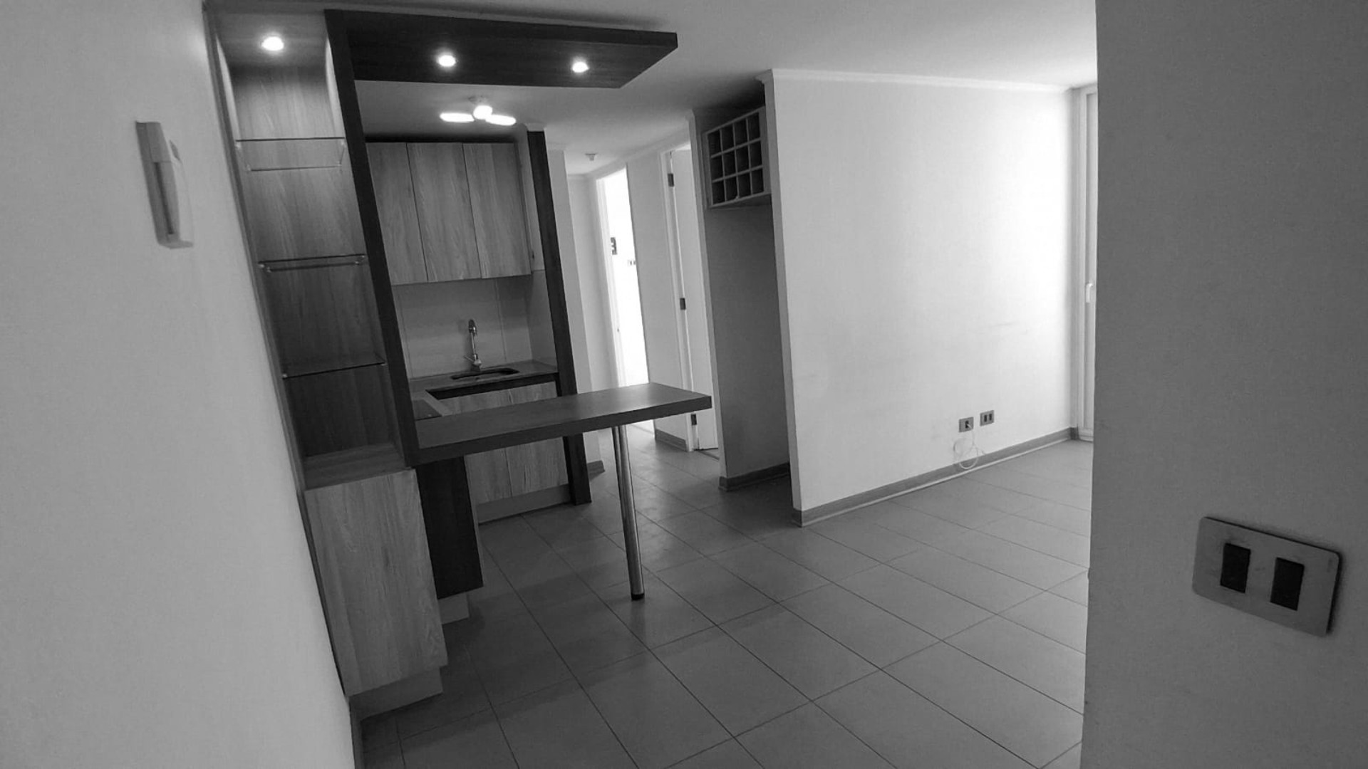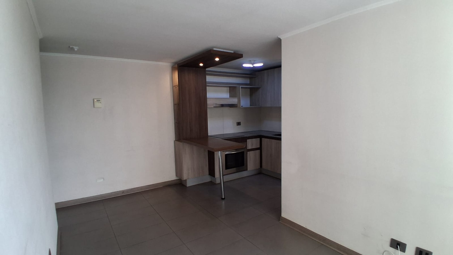 El área de estar integra living y comedor juntos con salida directa a la terraza. La cocina es abierta y está equipada con cubierta de granito, encimera vitrocerámica de 3 platos y conexión a lavadora en baño. Entre sus terminaciones destacan el piso de cerámica y flotante en excelente estado; las ventanas de PVC, que aportan confort térmico y acústico.
