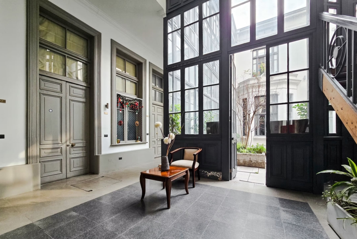 Excelente oportunidad para vivir en un loft único dentro de una casona patrimonial de Santiago, combinando arquitectura histórica, diseño moderno y una ubicación estratégica cerca del metro y del centro de la ciudad.